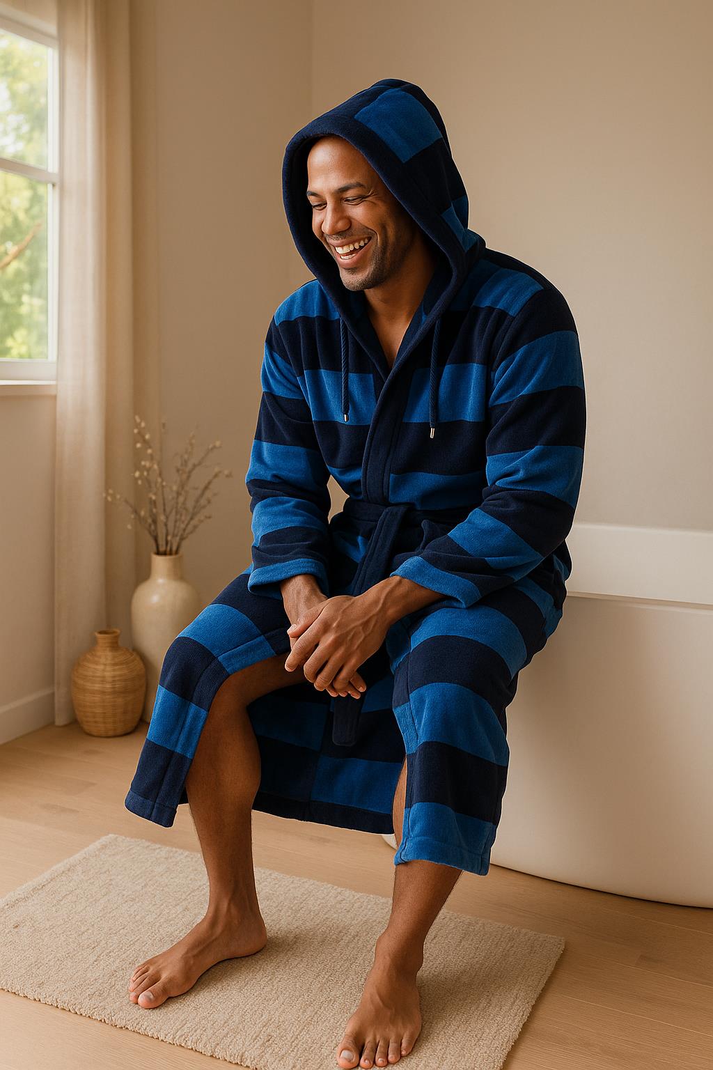 - Ender Home Bornoz İplik Boya Kolonlu Kadife Kısa Kapşonlu Model Bornoz