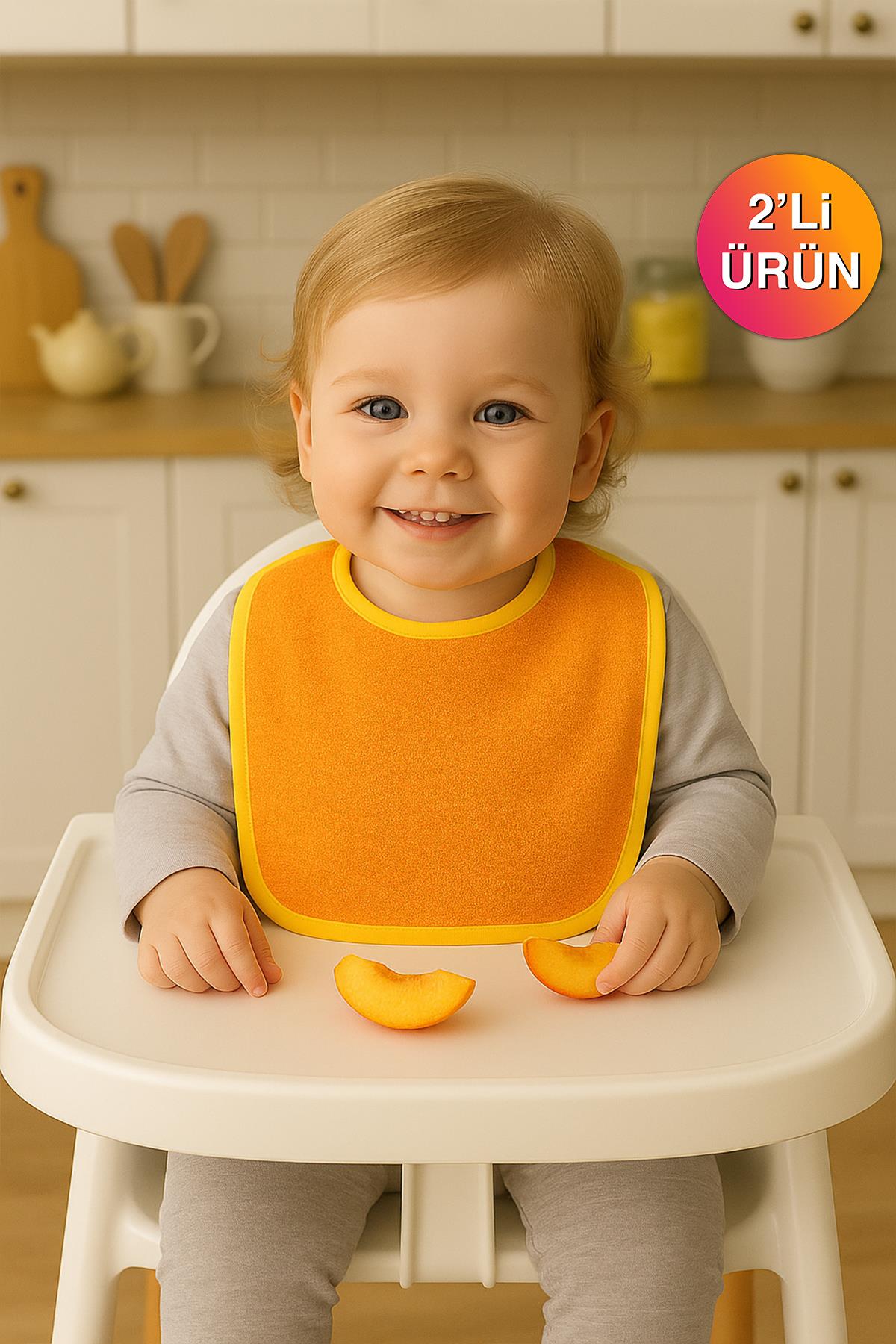 CottonVerse 2'li Bebek Mama Önlüğü – %100 Pamuk Havlu 25x30 cm Oranj