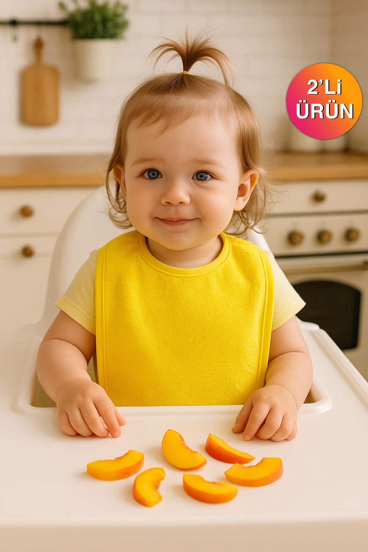 CottonVerse 2'li Bebek Mama Önlüğü – %100 Pamuk Havlu 25x30 cm Sarı