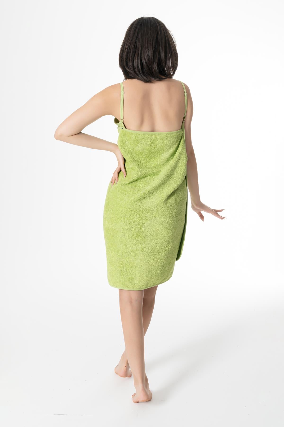 CottonVerse Askılı Havlu Plaj Elbise – %100 Pamuk Yeşil
