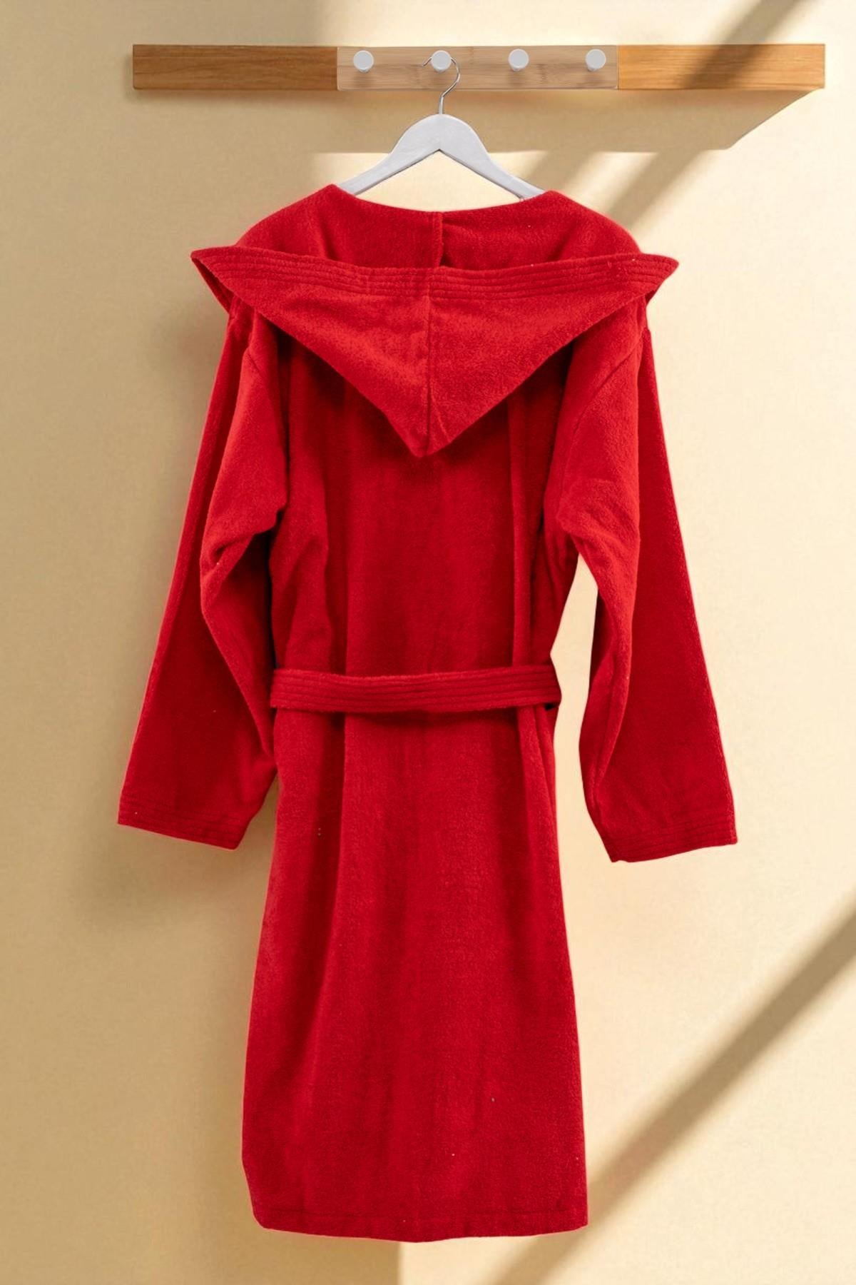 CottonVerse Kapüşonlu Bornoz – %100 Pamuk , Unisex Kırmızı