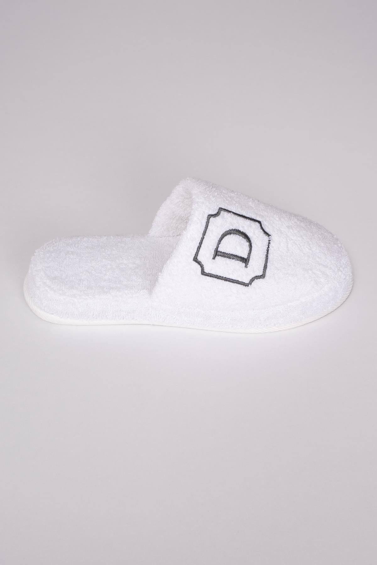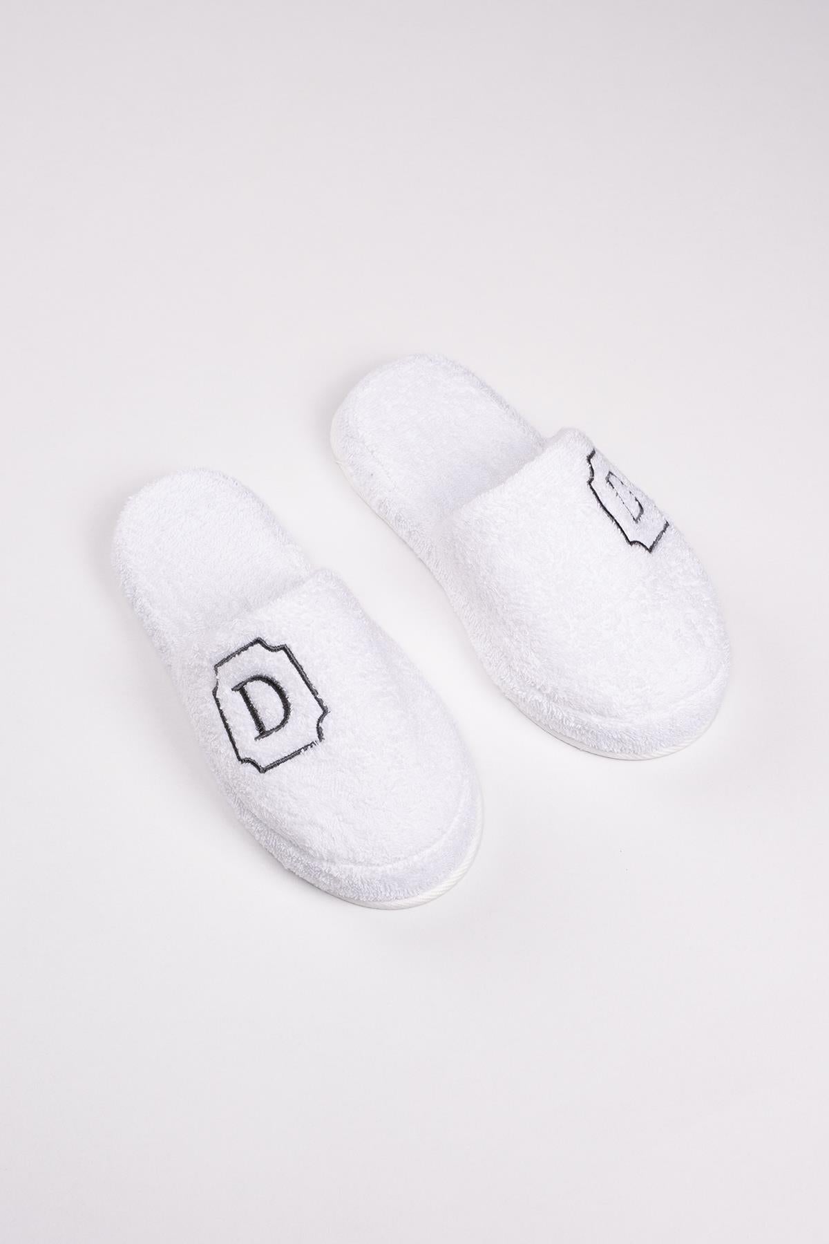 D Harf Nakışlı Banyo Ve Ev Havlu Terliği – %100 Pamuk Kaymaz Kalın Taban