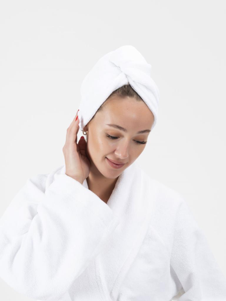 CottonVerse Düğmeli %100 Pamuk Saç Kurulama Bonesi Beyaz