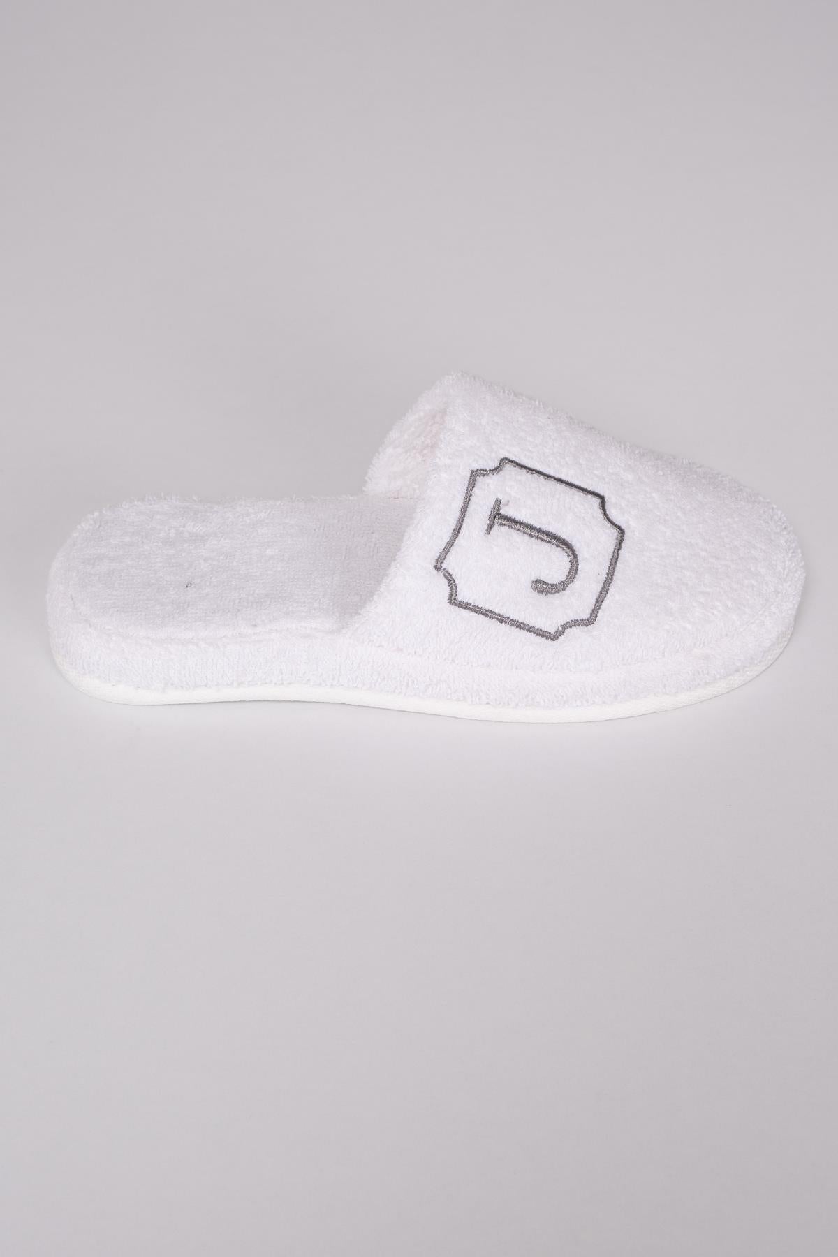 J Harf Nakışlı Banyo Ve Ev Havlu Terliği – %100 Pamuk Kaymaz Kalın Taban