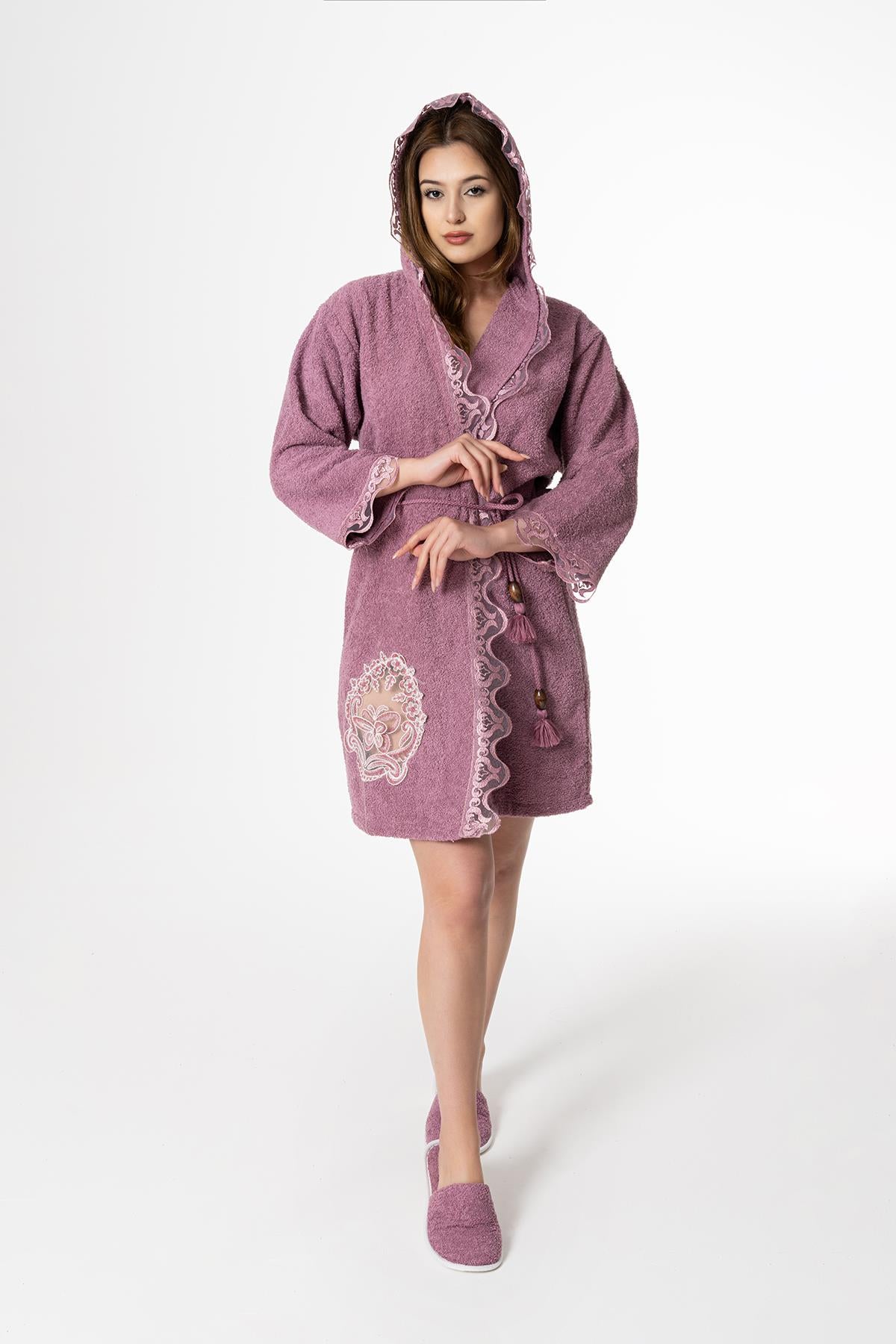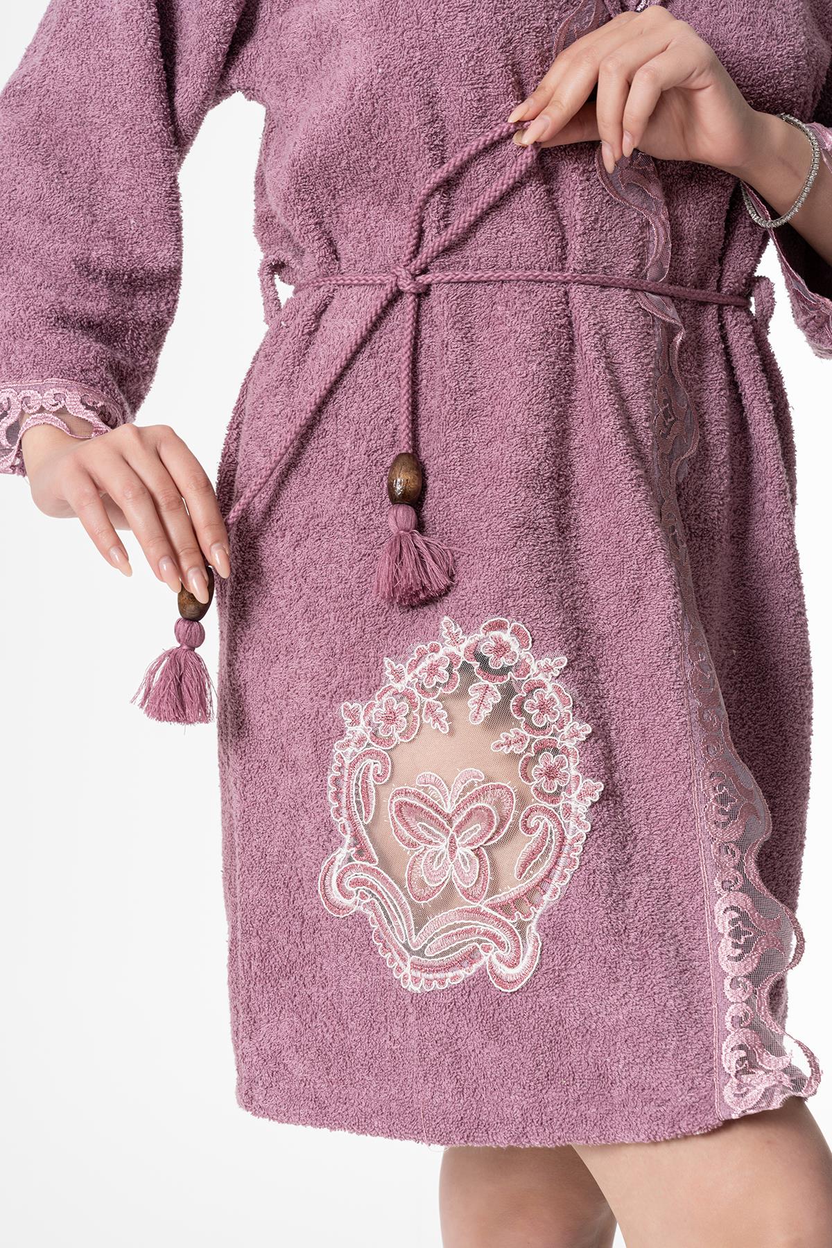 Kelebek Gelin Bornoz Set 5 Parça Dantelli Çeyizlik Takım Mor