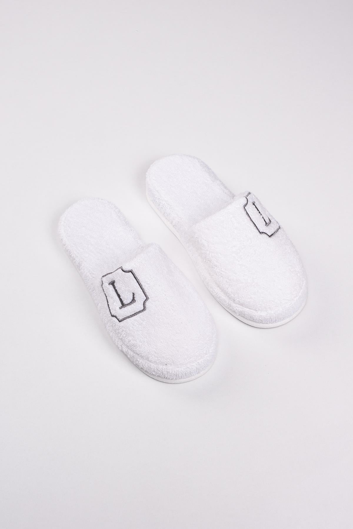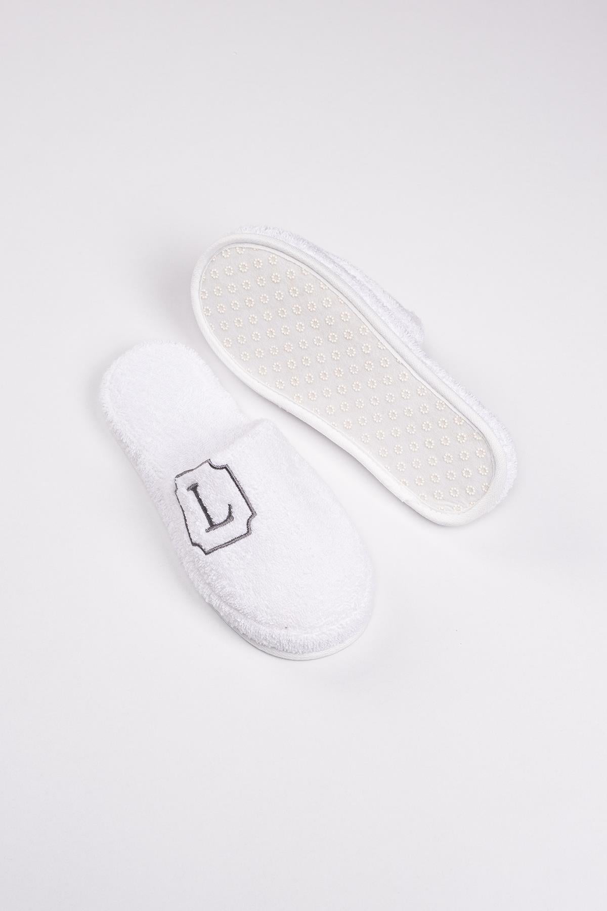 L Harf Nakışlı Banyo Ve Ev Havlu Terliği – %100 Pamuk Kaymaz Kalın Taban