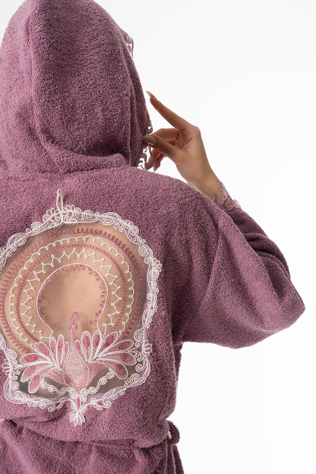 Pavlin Gelin Bornoz Set 5 Parça Dantelli Çeyizlik Takım Mor