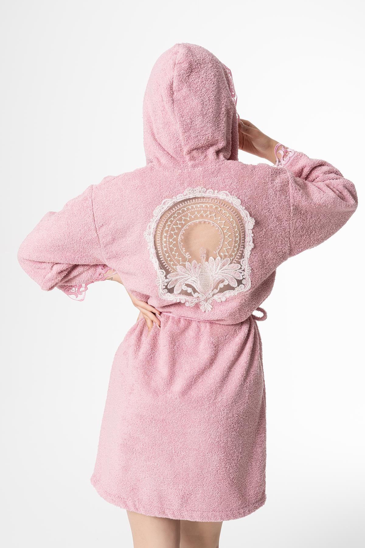 - Ender Home Pavlin Gelin Bornoz Seti 5 Parça Dantelli Çeyiz Bayan Bornoz Seti