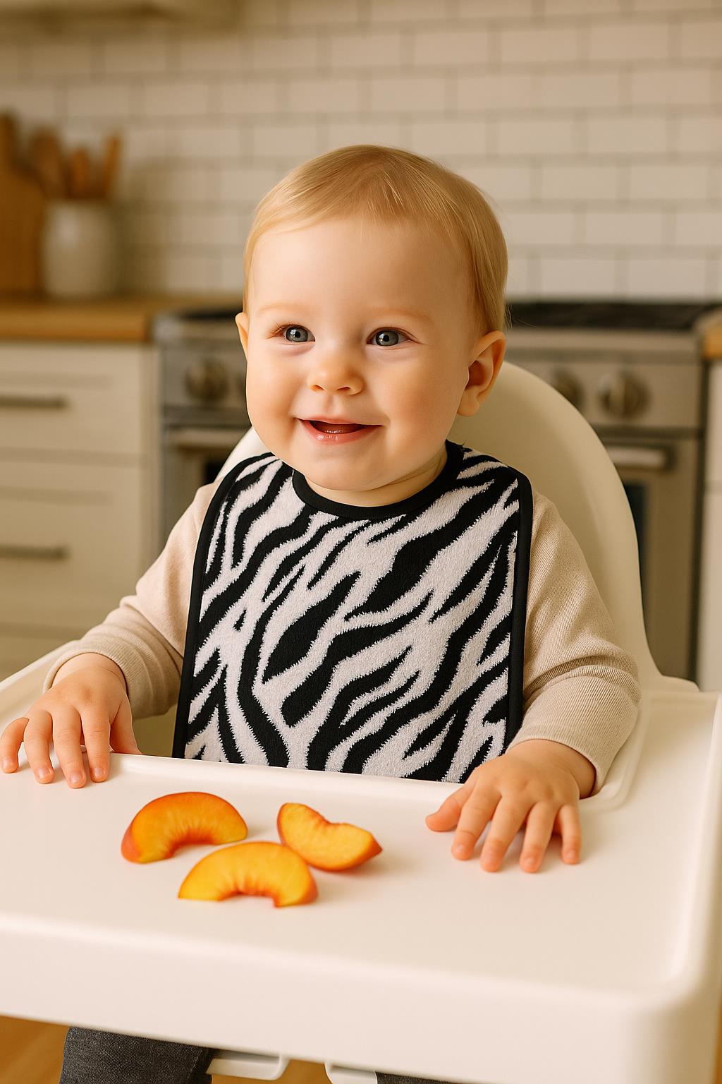 Wild Spirit 2'li Zebra Desenli Bebek Mama Önlüğü – Sıvı Geçirmez %100 Pamuk 25x40 Cm Zebra Desen-Siyah Biyeli