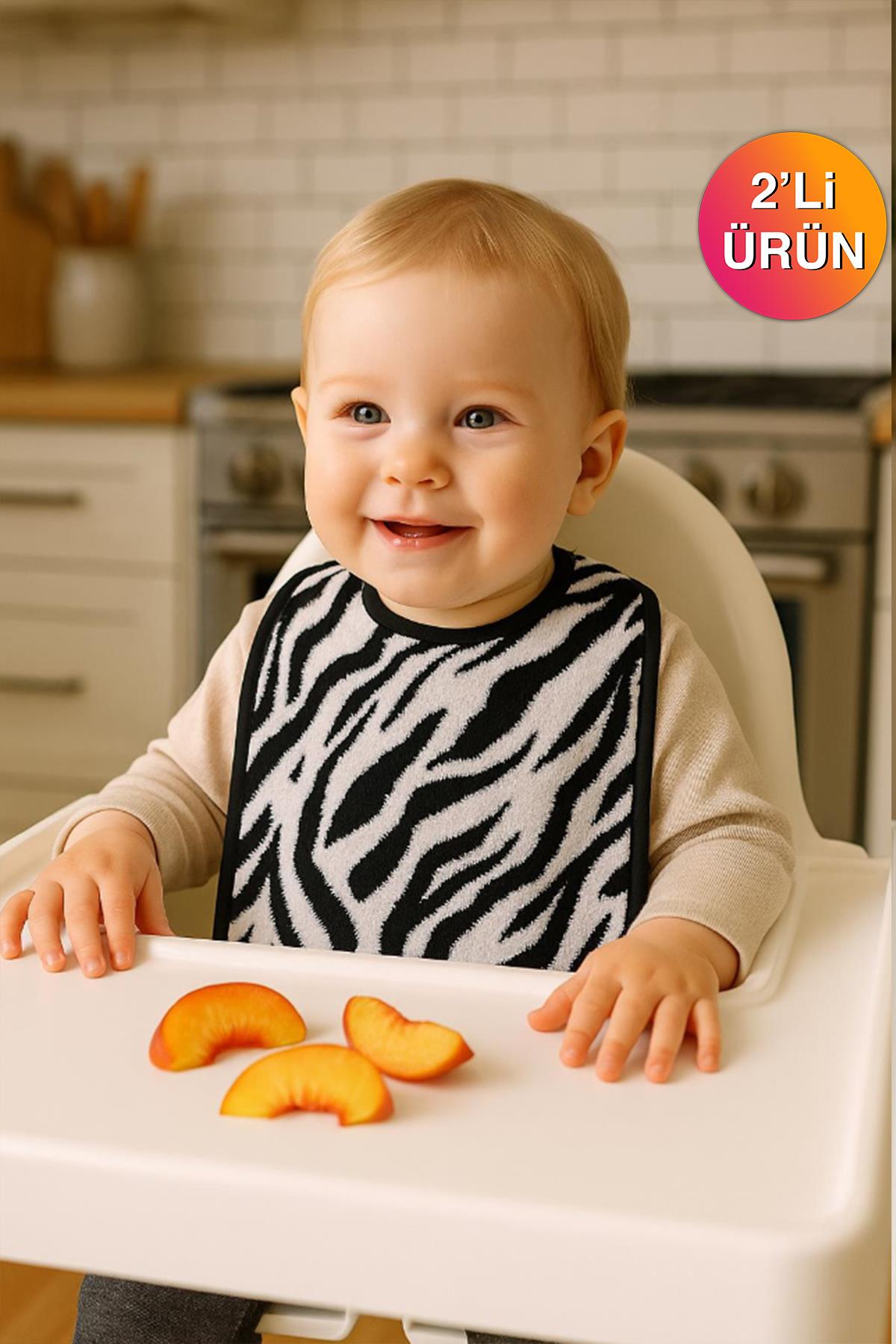 - Ender Home Zebra Desen 2'Li Havlu Su Geçirmez Bebek Mama Önlüğü Cırt Bantlı Çocuk Önlüğü