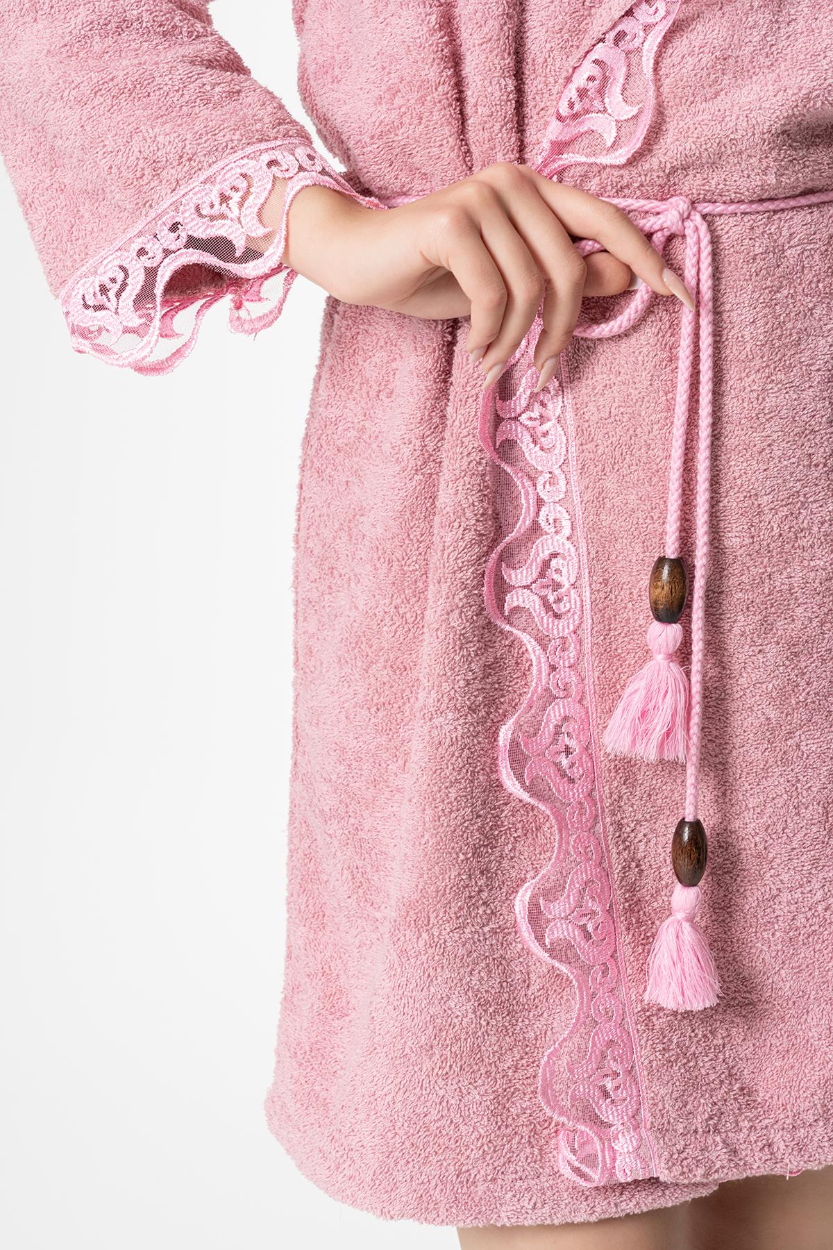 Ada Gelin Bornoz Set 5 Parça Dantelli Çeyizlik Takım Pembe