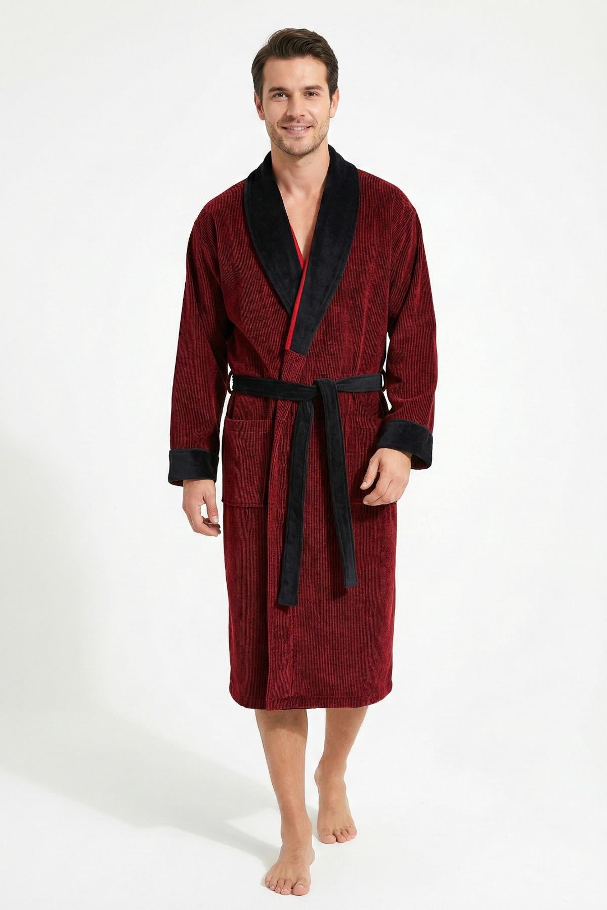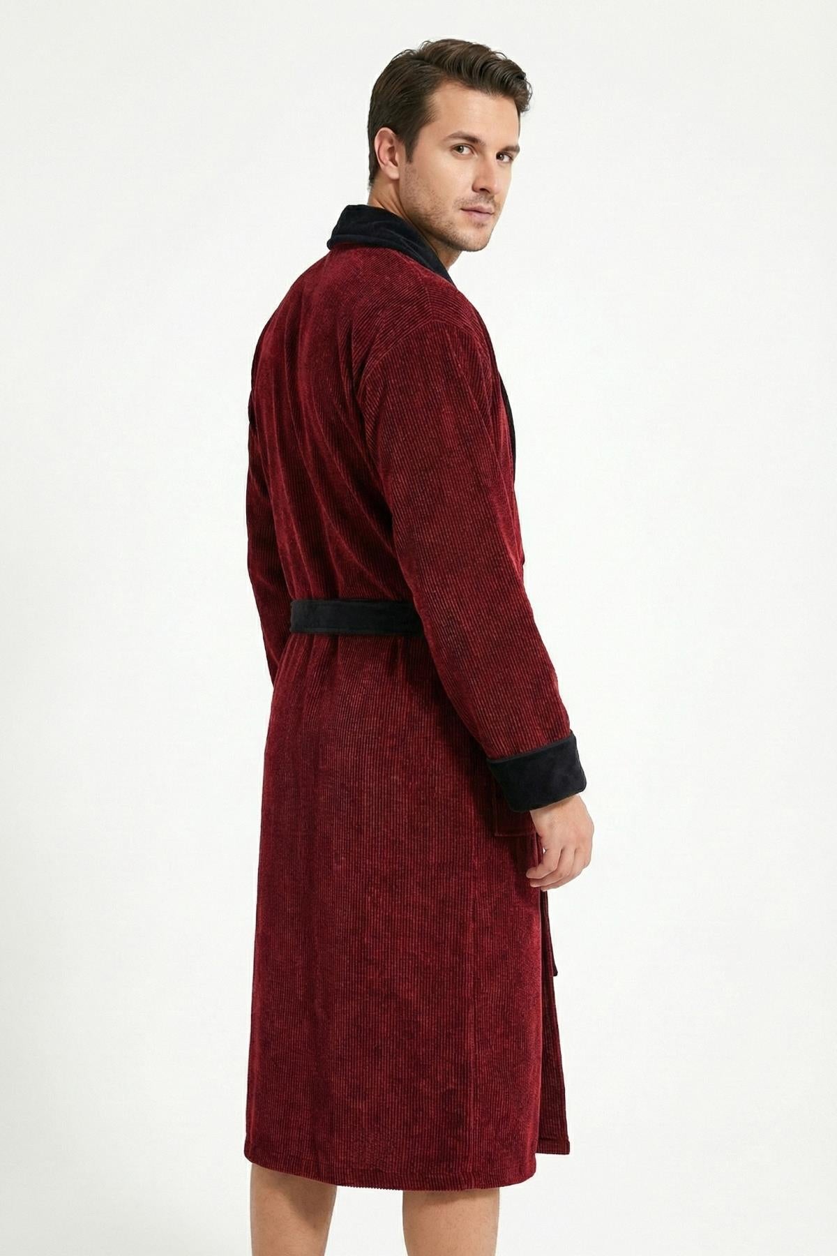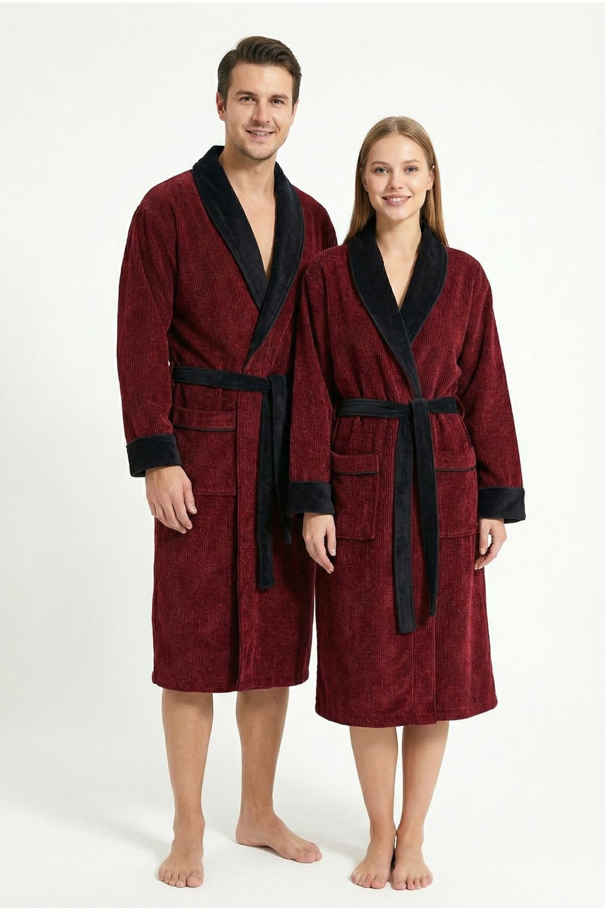 • Ender Home Bornoz İplik Boya Fitilli Kadife Bornoz Şalyaka Model Bornoz