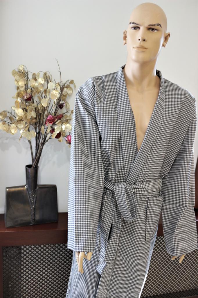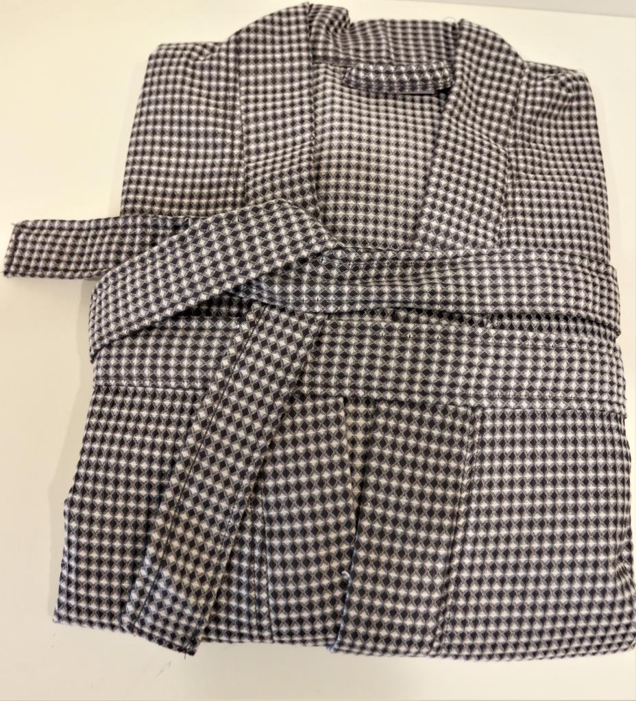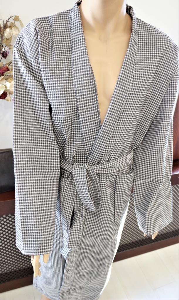 - Ender Home Bornoz İplik Boya Siyah Beyaz Pike Kimono Bornoz Baklava Desen Kuşaklı Waffle Pike Sabahlık Bornoz