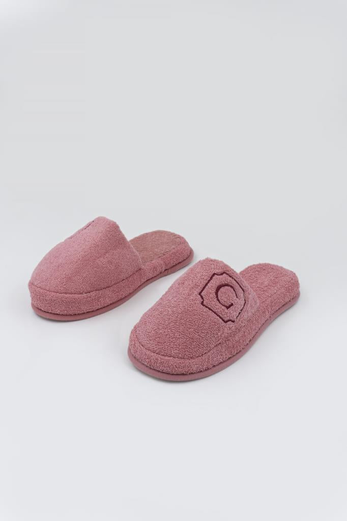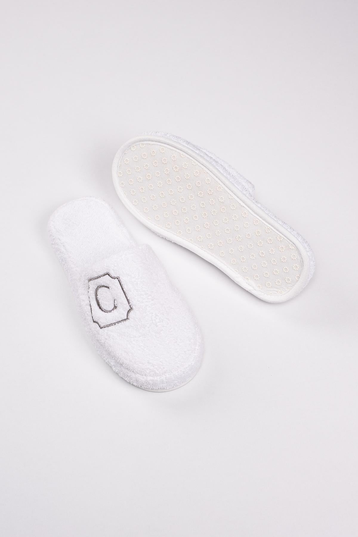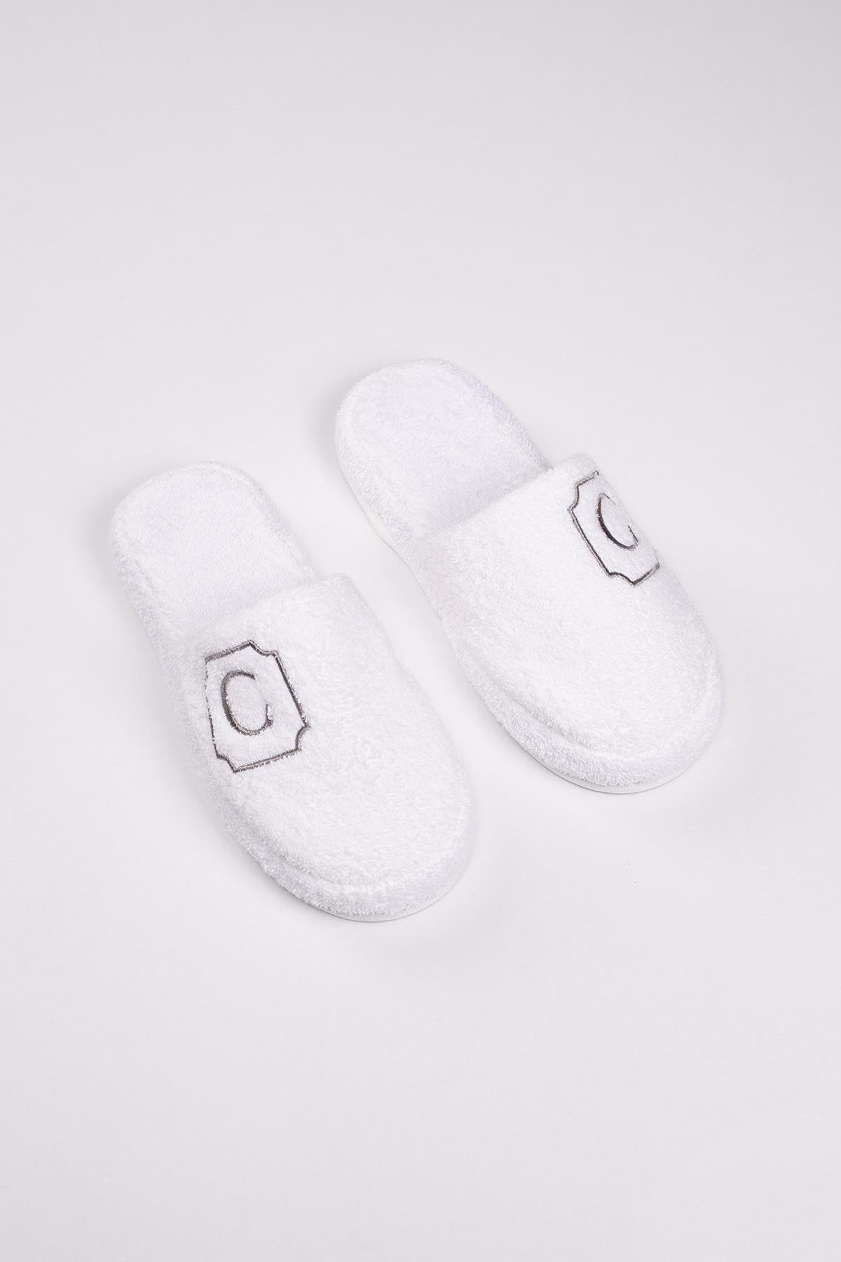 C Harf Nakışlı Banyo Ve Ev Havlu Terliği – %100 Pamuk Kaymaz Kalın Taban