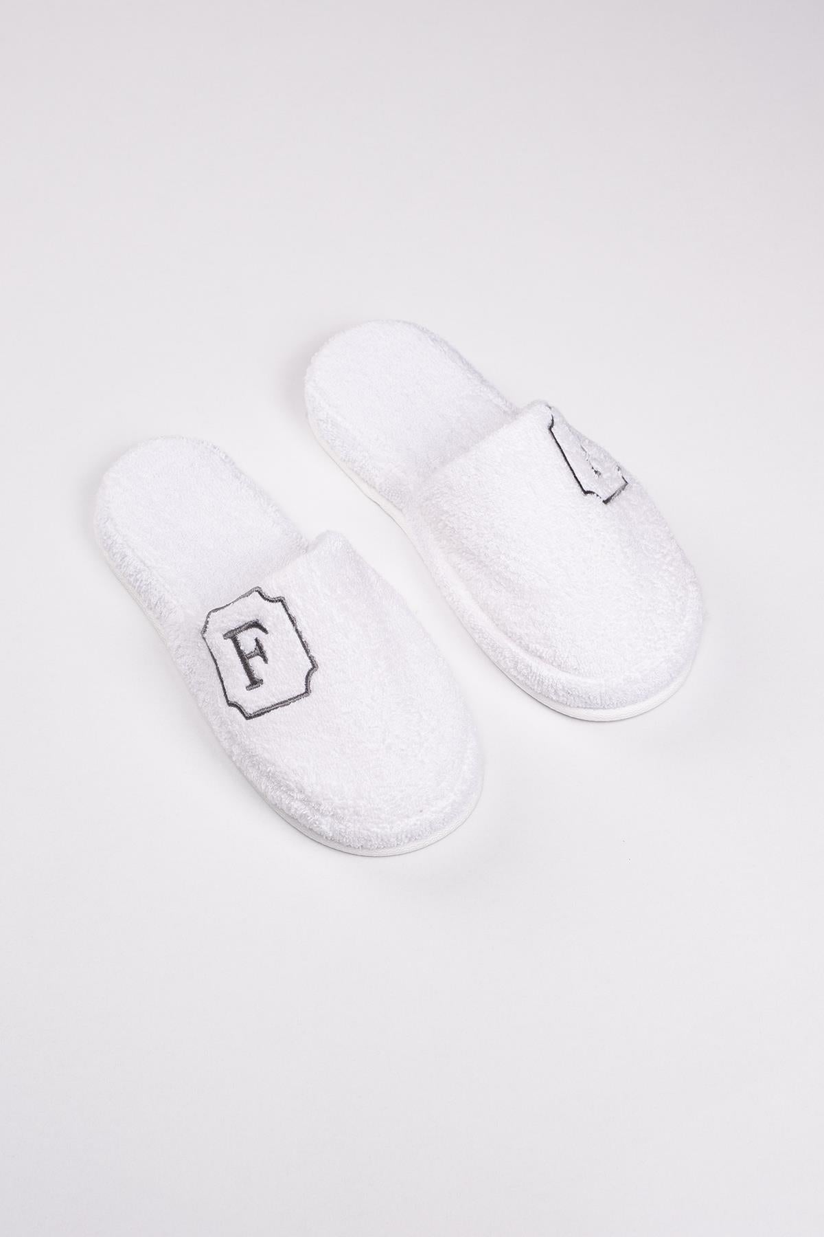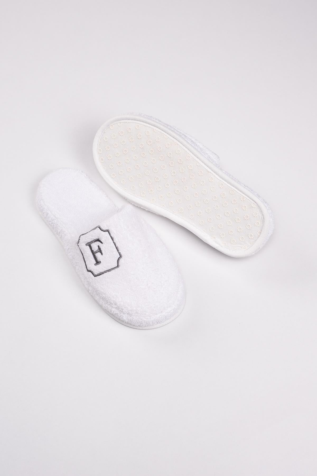 F Harf Nakışlı Banyo Ve Ev Havlu Terliği – %100 Pamuk Kaymaz Kalın Taban