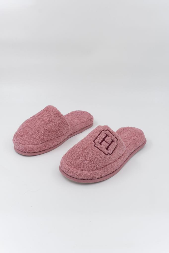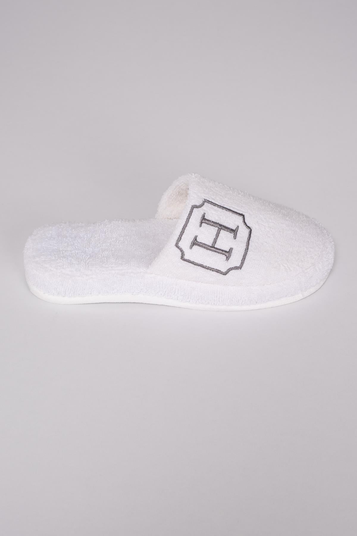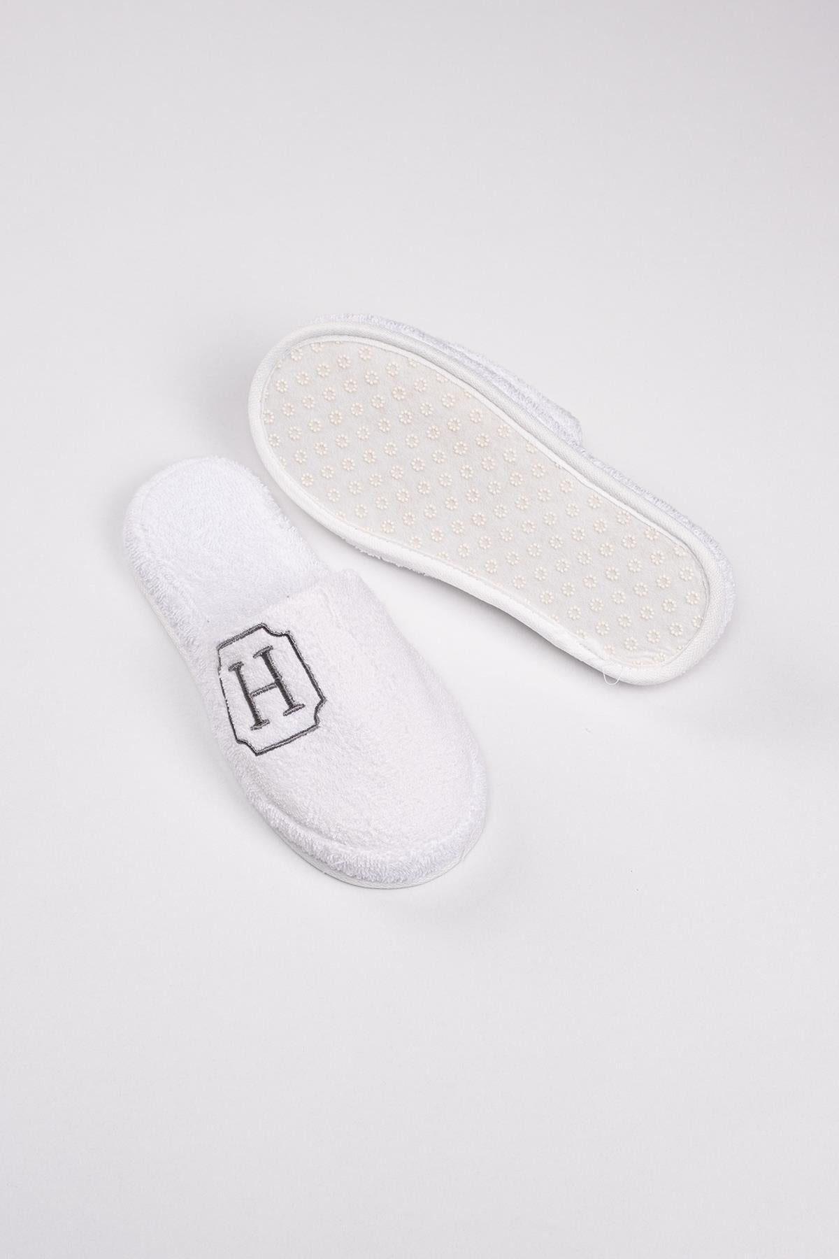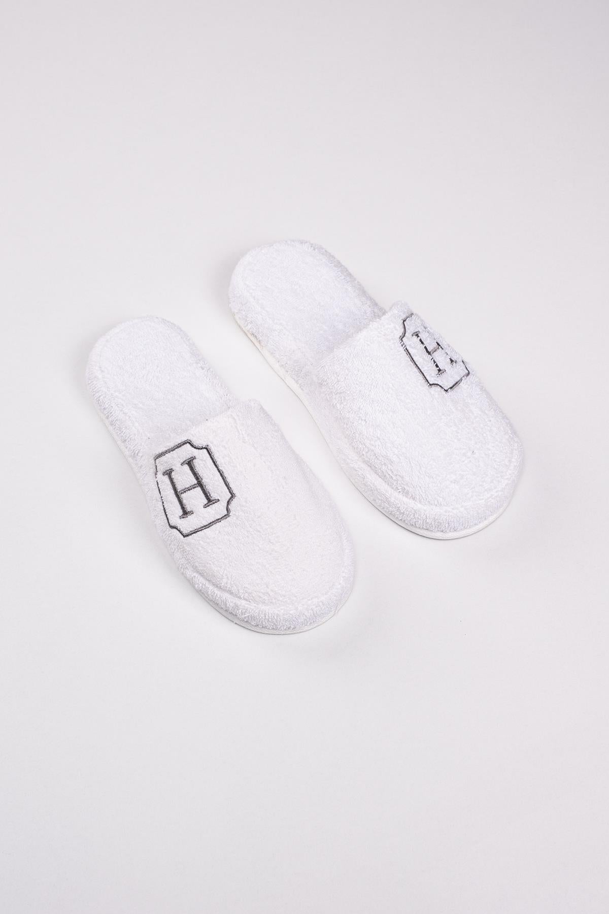 H Harf Nakışlı Banyo Ve Ev Havlu Terliği – %100 Pamuk Kaymaz Kalın Taban