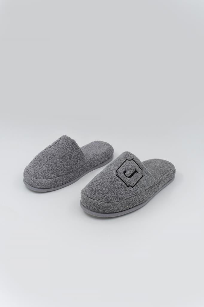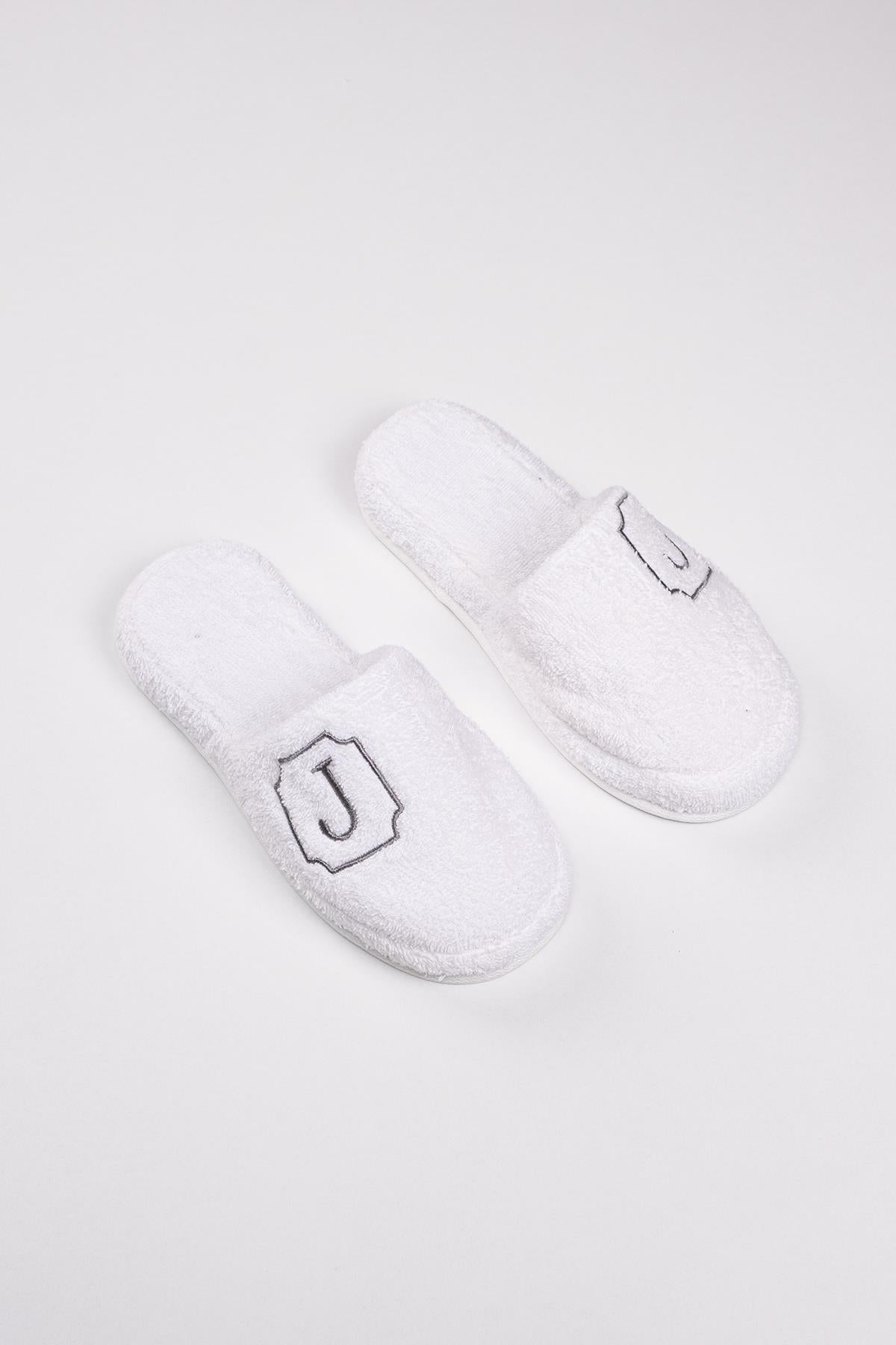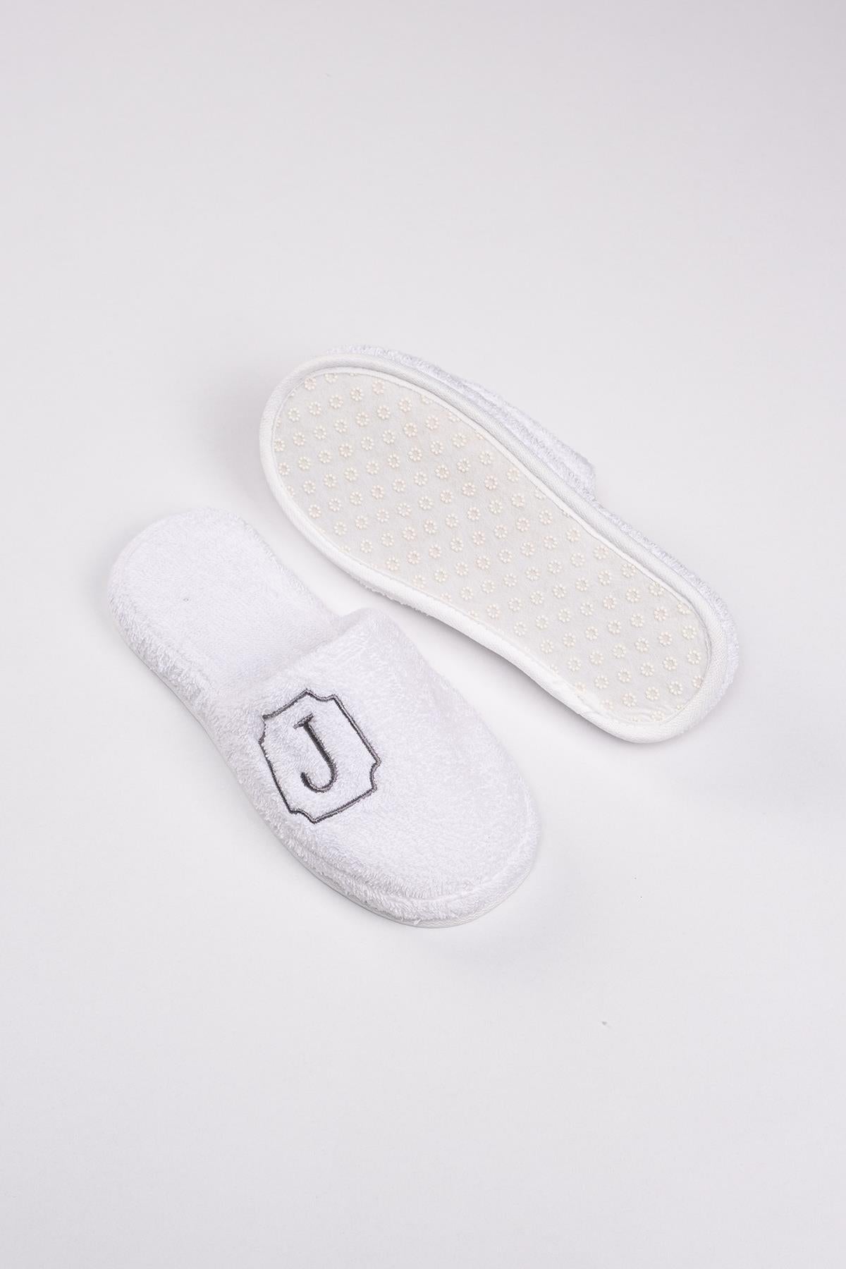 J Harf Nakışlı Banyo Ve Ev Havlu Terliği – %100 Pamuk Kaymaz Kalın Taban