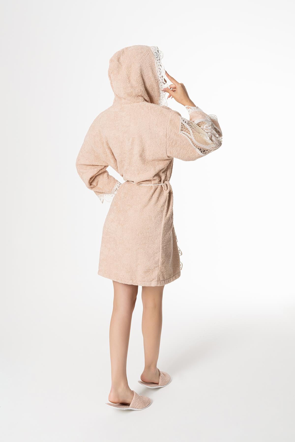 Lena Gelin Bornoz Set 5 Parça Dantelli Çeyizlik Takım Bej