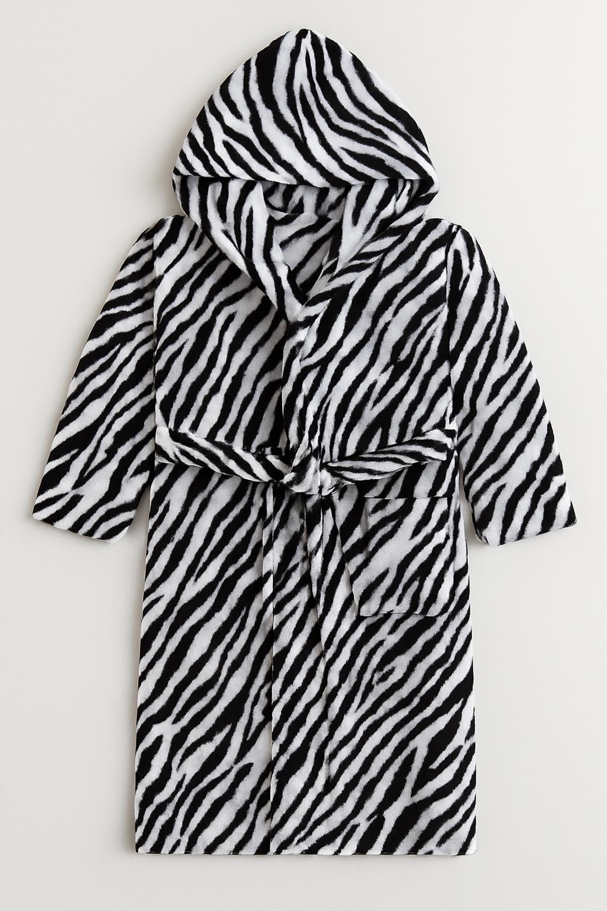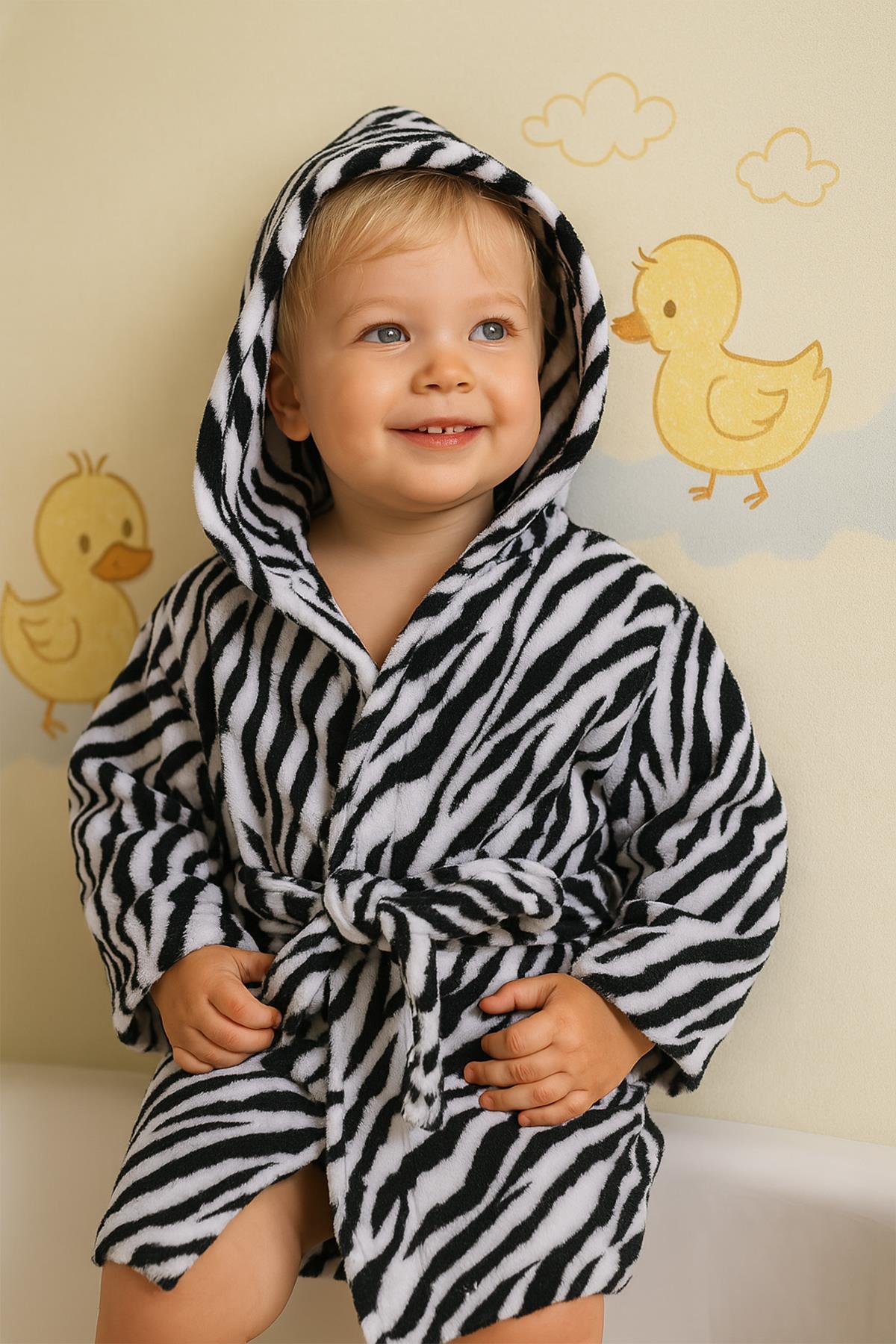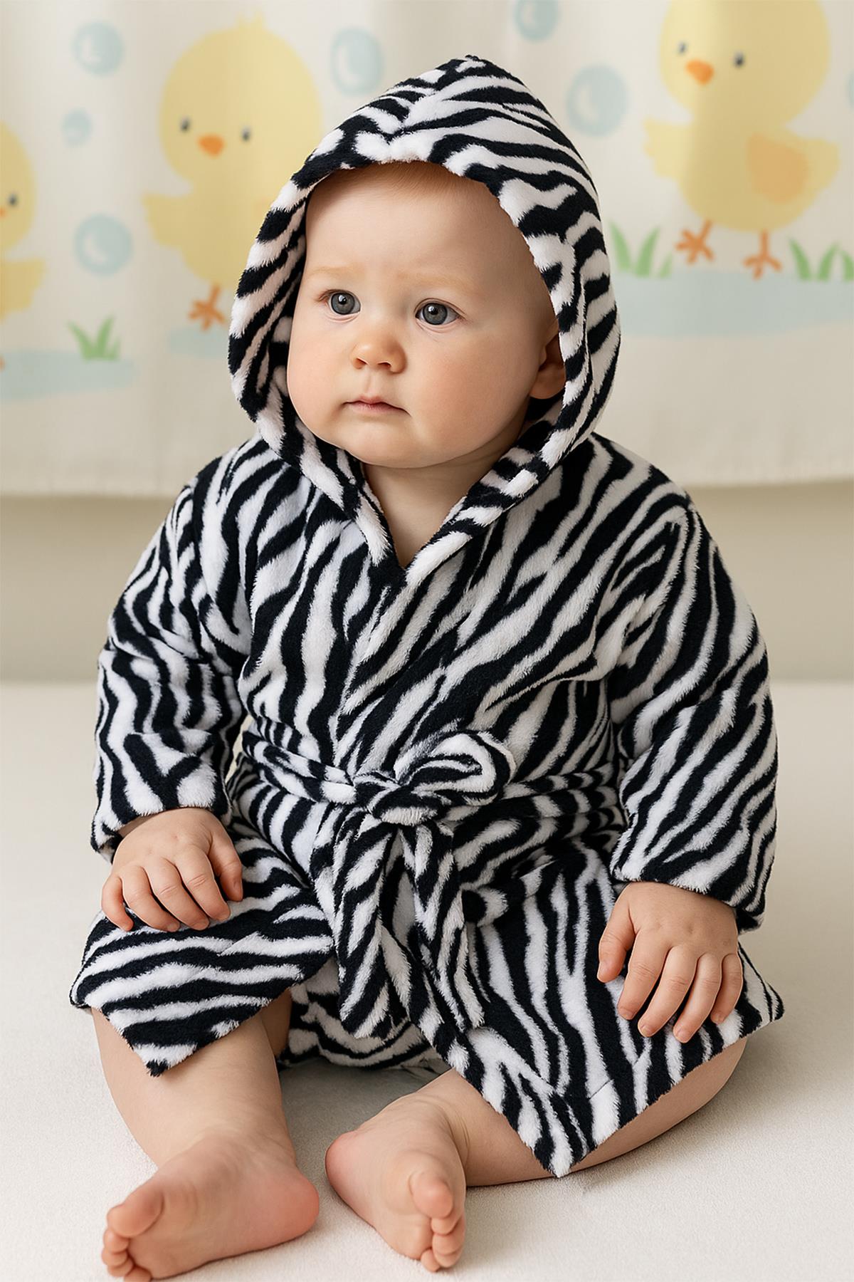 - Ender Home Zebra Desen Bebek & Çocuk Kapşonlu Bornoz | %100 Pamuk Unisex