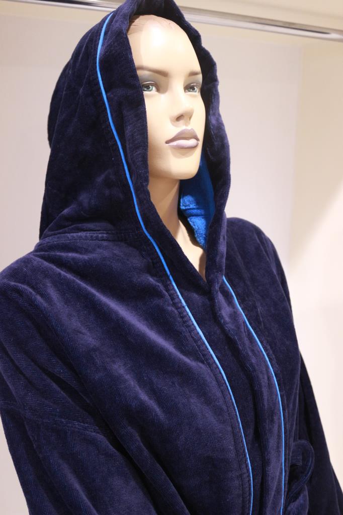 - Ender Home Bornoz İplik Boya Düz Kadife Bornoz Uzun Kapşonlu Model Bornoz