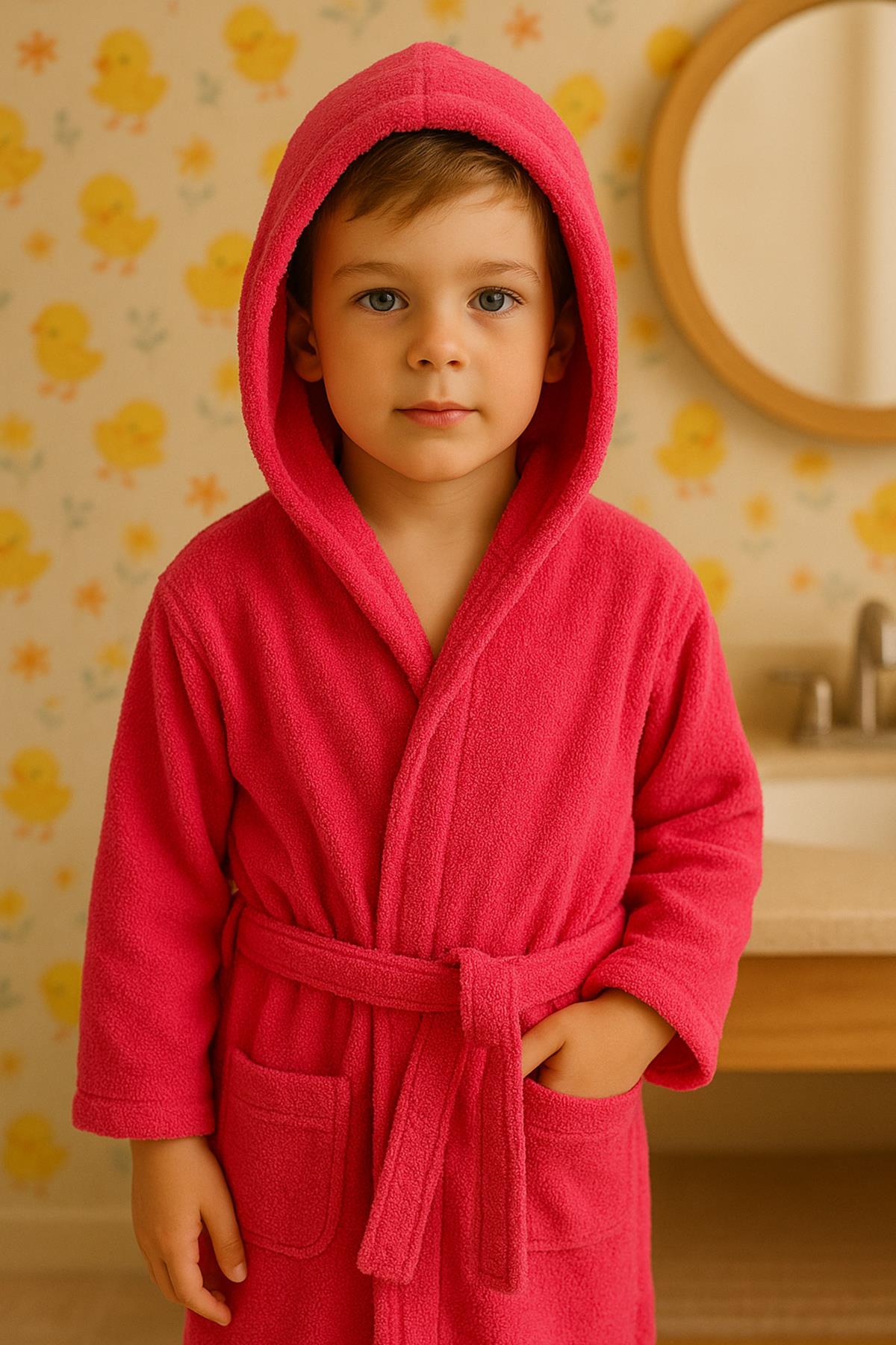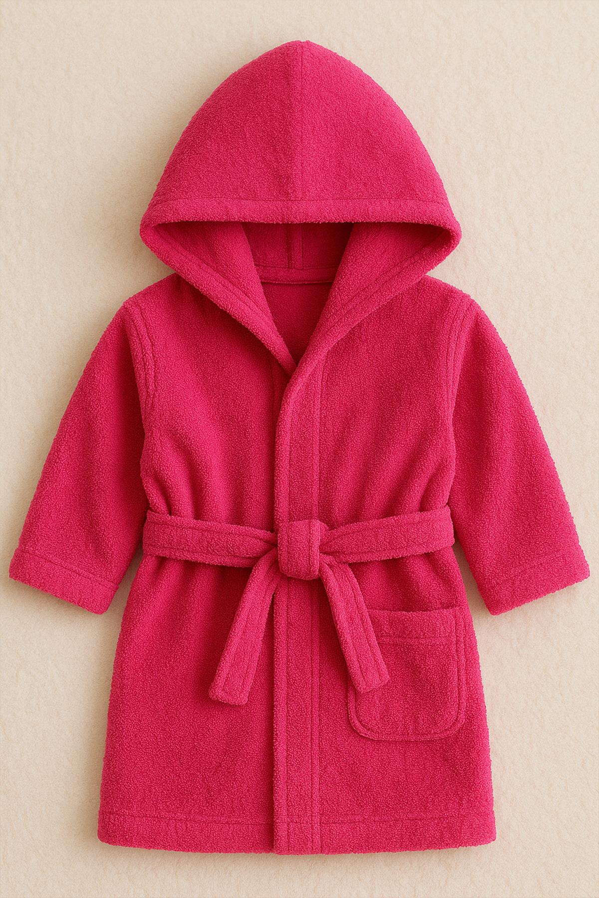 CottonVerse Bebek & Çocuk Kapşonlu Bornoz – %100 Pamuk, Unisex Fuşya