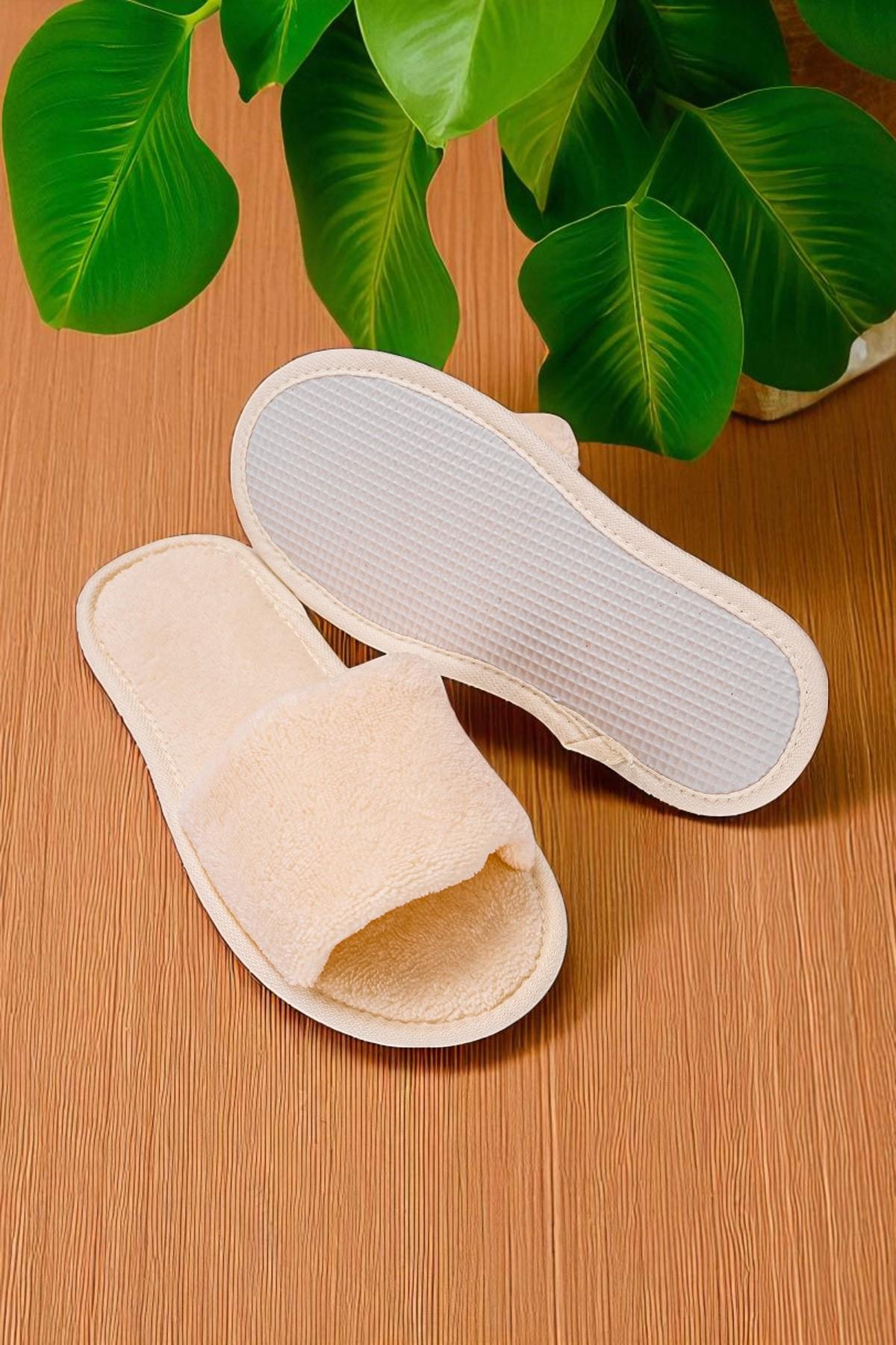 Ender Home Kadife Terlik Triga Örme Banyo Ev Otel Lohusa Terliği Kaymaz İnce Taban Açık Burun Terlik