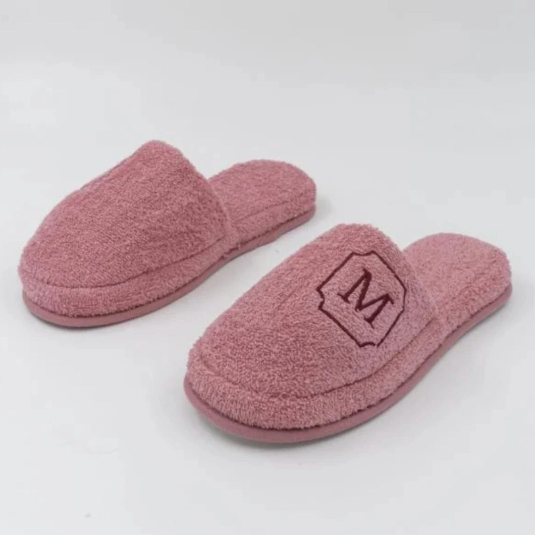 J Harf Nakışlı Banyo Ve Ev Havlu Terliği – %100 Pamuk Kaymaz Kalın Taban