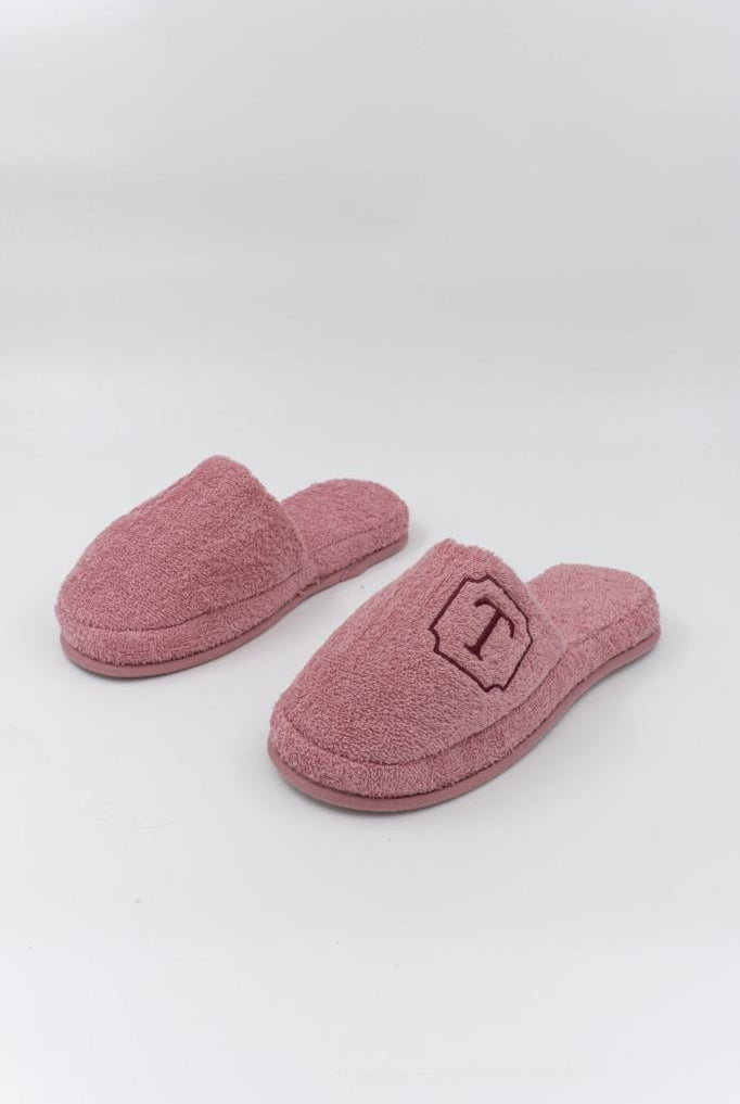 E Harf Nakışlı Banyo Ve Ev Havlu Terliği – %100 Pamuk Kaymaz Kalın Taban